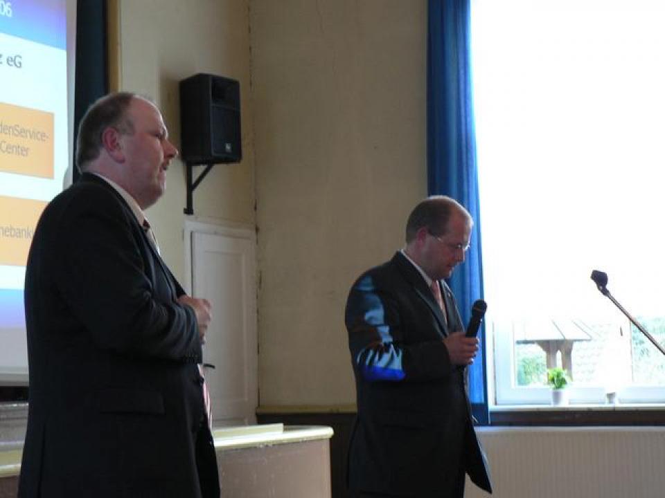 Nachdem der Vorstand im März bereits die Vetreter der Bank informiert hatte, gab es jetzt während einer außerordentlichen Ortsratssitzung eine Information durch Vorstand und Aufsichtsrat der Bank. Hierzu war neben den Bankvorständen Torsten Janßen und Norbert Gössling auch der Vorsitzende des Aufsichtsrats nach Lerbach gekommen. Im Anschluß an die Sitzung konnten die etwa 80 erschienenen, meist älteren Einwohner Lerbachs Fragen stellen.