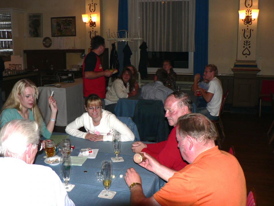 Dadurch, dass die Sitzverteilung im Sauerbreyschen Saal ausgelost wird, bietet dieser Wettbewerb die M?glichkeit, auch mal mit Lerbachern ins Gespr?ch zu kommen, die man sonst nicht so oft trifft. Entsprechend gut und locker war dann auch die Stimmung. W?hrend beim Skat trotzdem konzentriert gespielt wurde, gingen von den Knobeltischen immer wieder Jubelschreie durch den Saal, wenn ein besonders gutes W?rfelergebnis gelang.