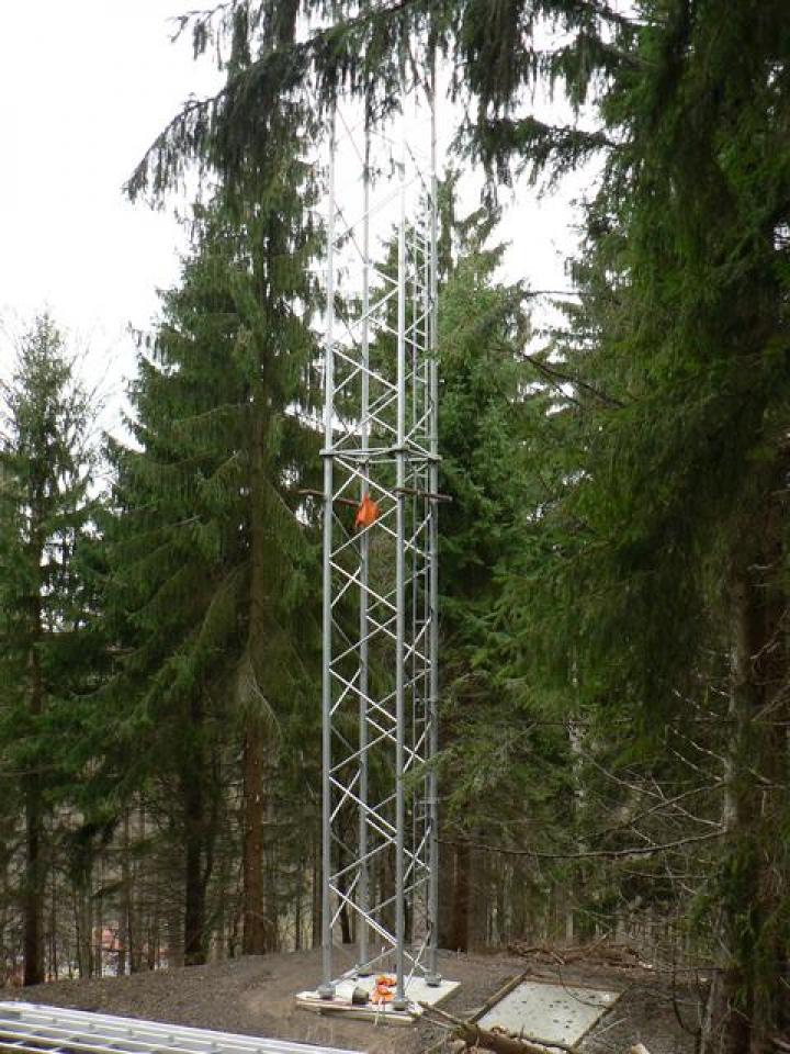Parallel zur Aufstellung des Turmes laufen die Vorbereitungen zur Anbindung an das Strom- und Telefonnetz. Diese wird nun über die Wiese hinunter zum Schwarzenberg erfolgen (Einstieg gegenüber des Schützenhauses zwischen den Garagen und den Häusern Großmann/Oppermann).