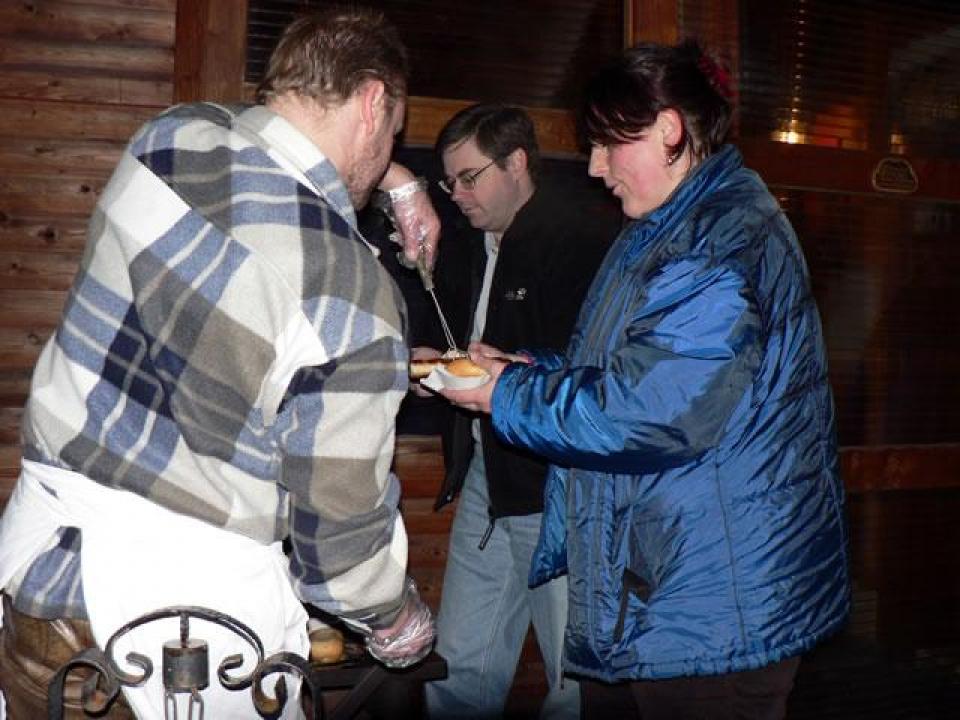 So organisierte die 2. Vorsitzende Claudia Szemeitat Fackeln, mit denen es dann auf Wanderschaft von der Turnhalle über die Rote Sohle zu Steiers Hütte ging. Dort warteten bereits gegrillte Würstchen auf die Kinder, die sich begierig stärkten. Als krönender Abschluß kam dann sogar noch der Weihnachtsmann.