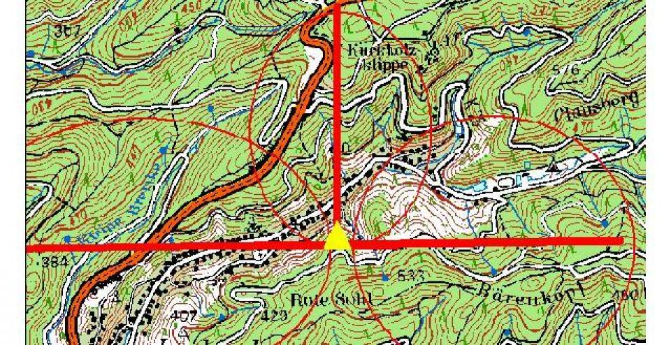 Karte mit den Strahlungsrichtungen der Mobilfunkantennen
